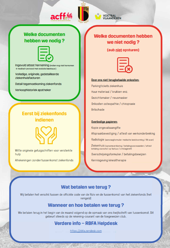 Opgelet ! Onvolledige en te laat ingestuurde aangiftes worden door de bond geweigerd !! Vergeet geen klever van de mutualiteit en een handtekening !
